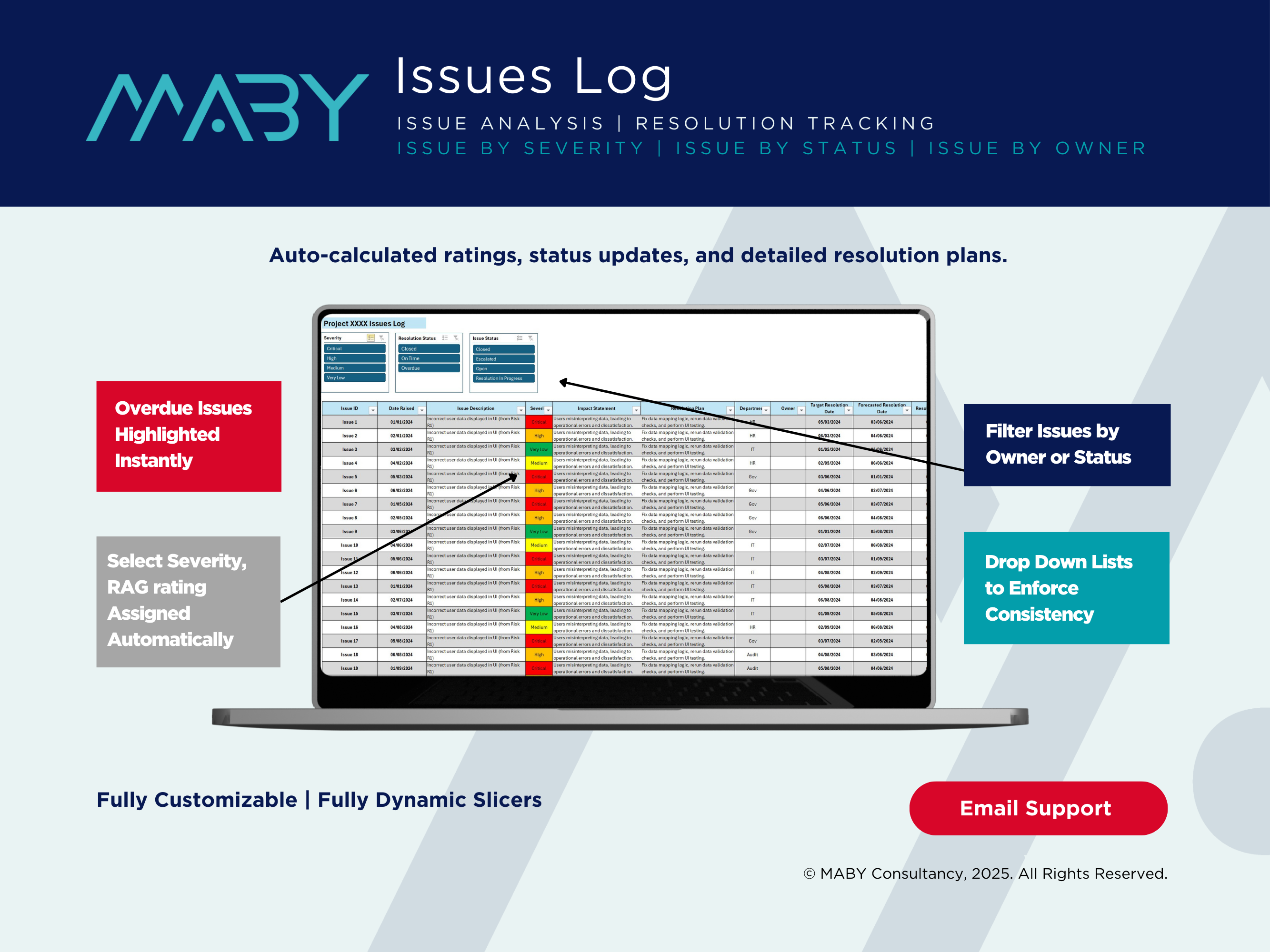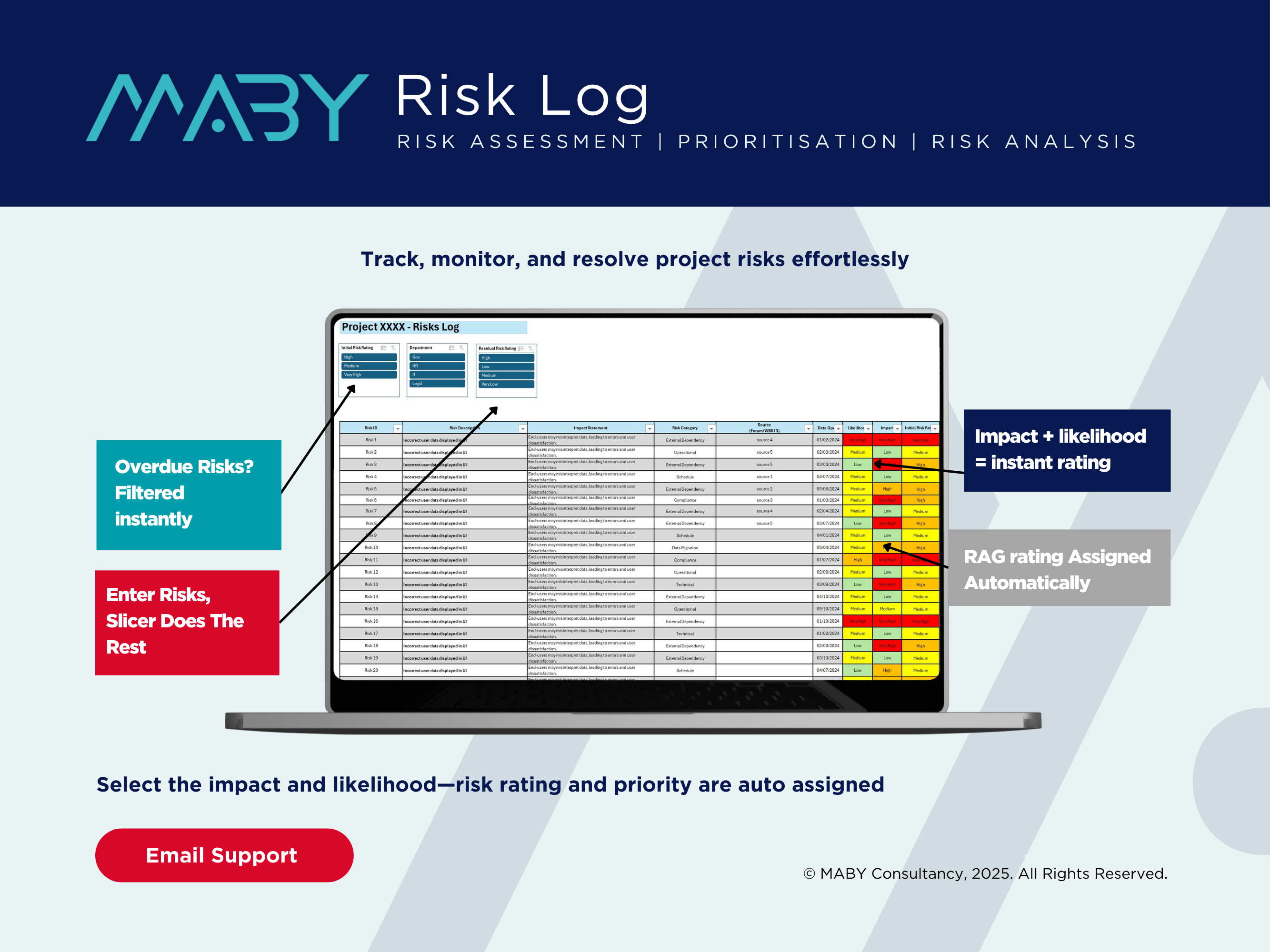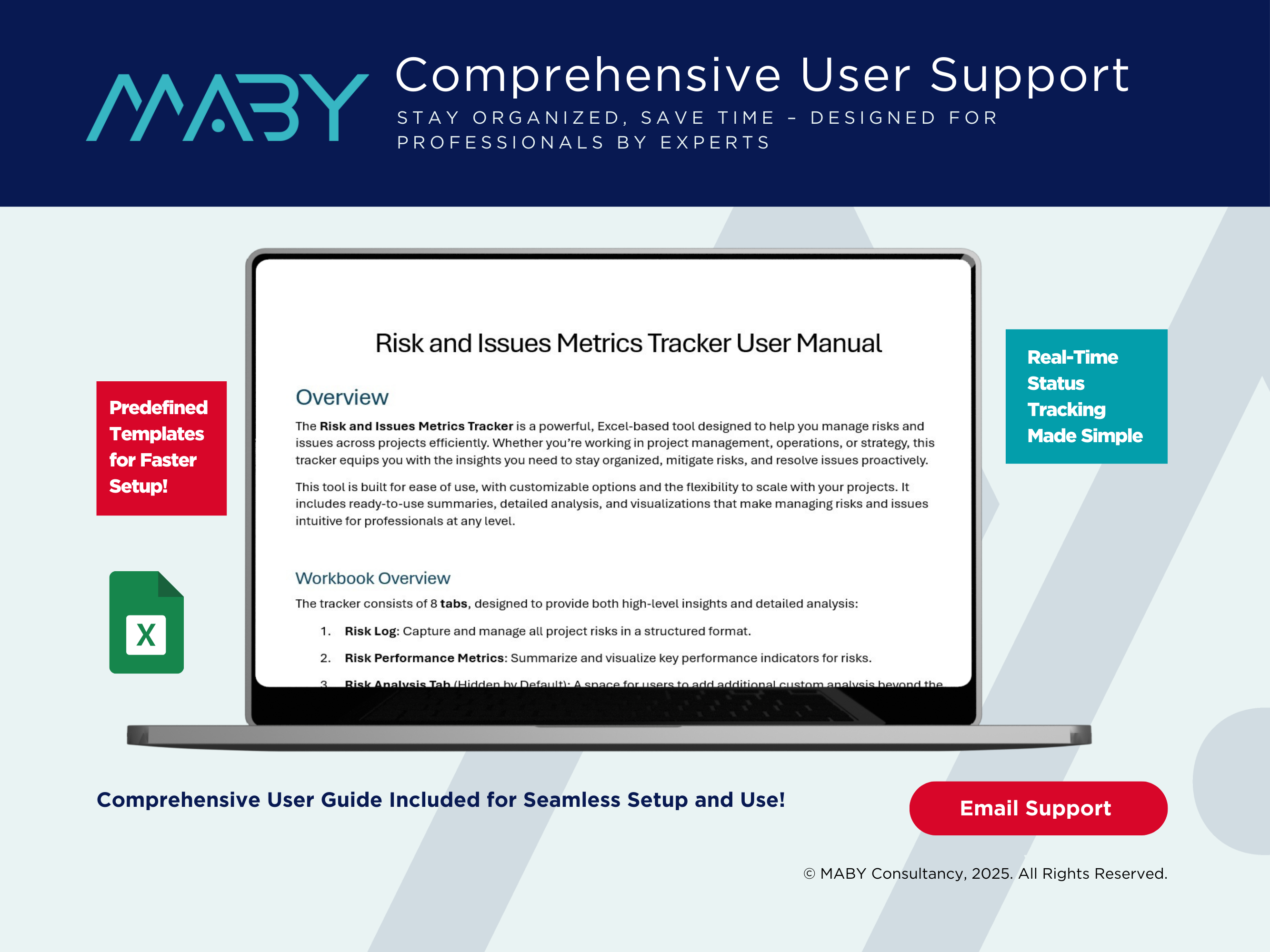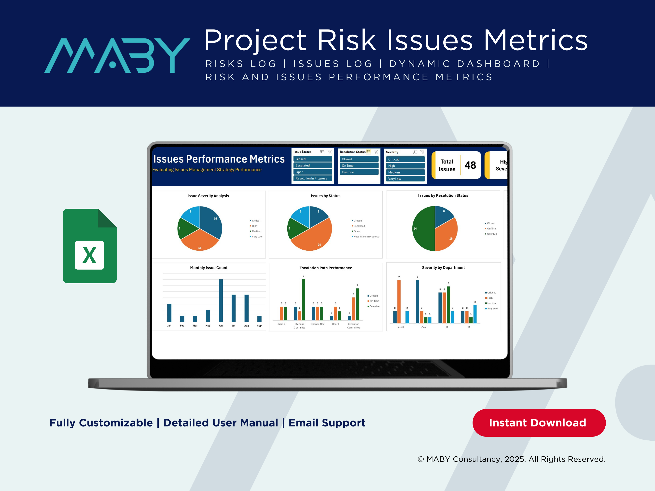 Take control of project risks and issues with this Excel-based tracker, designed for project managers, PMOs, consultants, and business analysts. Whether managing a single project or an entire portfolio, this tool simplifies tracking, automates calculations, and provides real-time insights